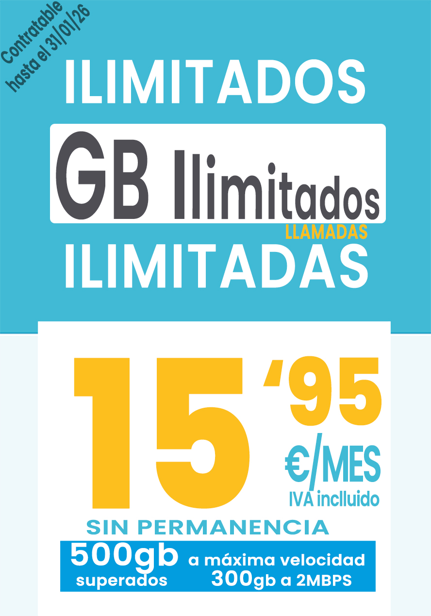 Superado los Gb navega sin cortes 1Gb más a 16 kbs, antes de quedarte sin datos o ELIGE LIBREMENTE contratar un Bono de datos para completar el mes.
